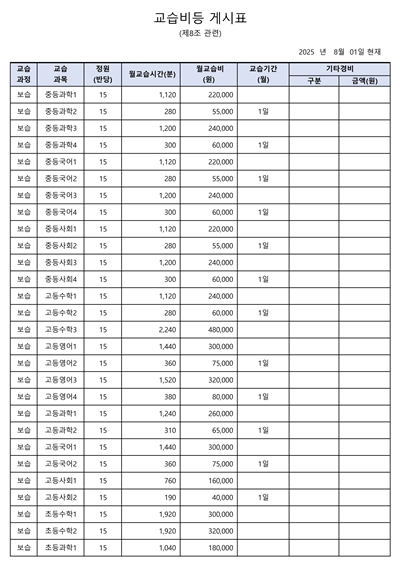 수강료안내